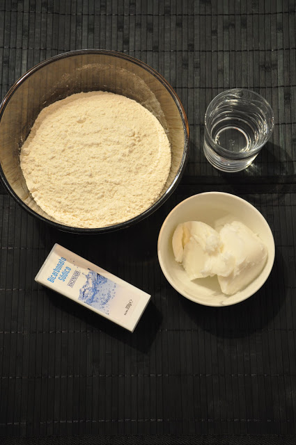 Preparamos la harina, la manteca, el agua, la sal y el bicarbonato y hacemos una masa.